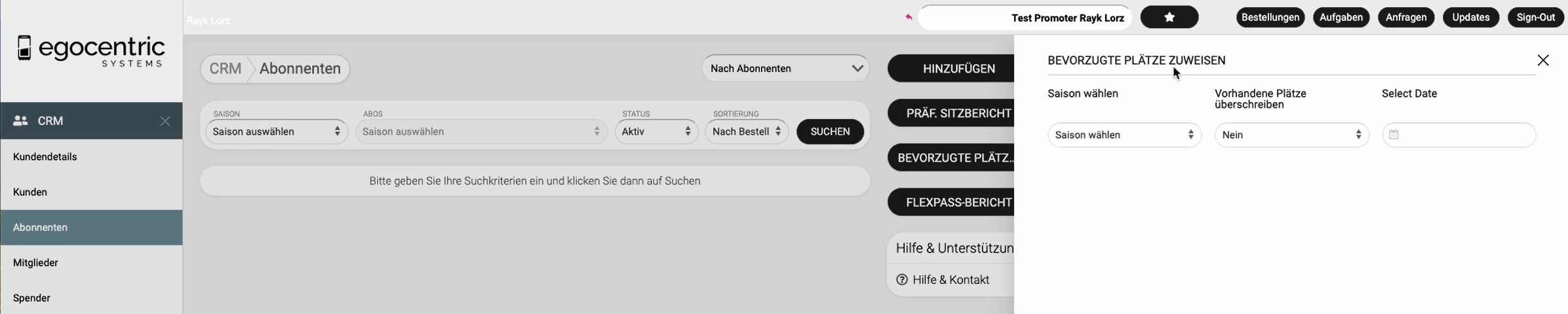 - Das System durchsucht alle Abonnenten der letzten Saison und weist ihnen erneut ihre Preferred Seats zu, sofern sie noch keinen haben.