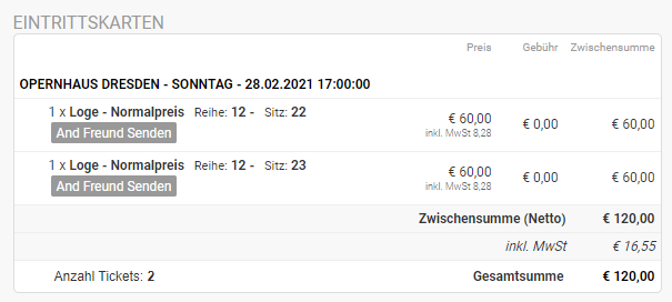 Deine Kunden haben die Möglichkeit Tickets direkt aus der Bestellbestätigung oder im Ticket an Freunde zu verschenken. Möchtest du diese Funktion deinen Kunden nicht anbieten? Dann kannst du diese auch deaktivieren. Der Vorteil für Veranstalter ist, dass bei der Versendung des Tickets auch die Kundendaten der Freunde gewonnen werden.