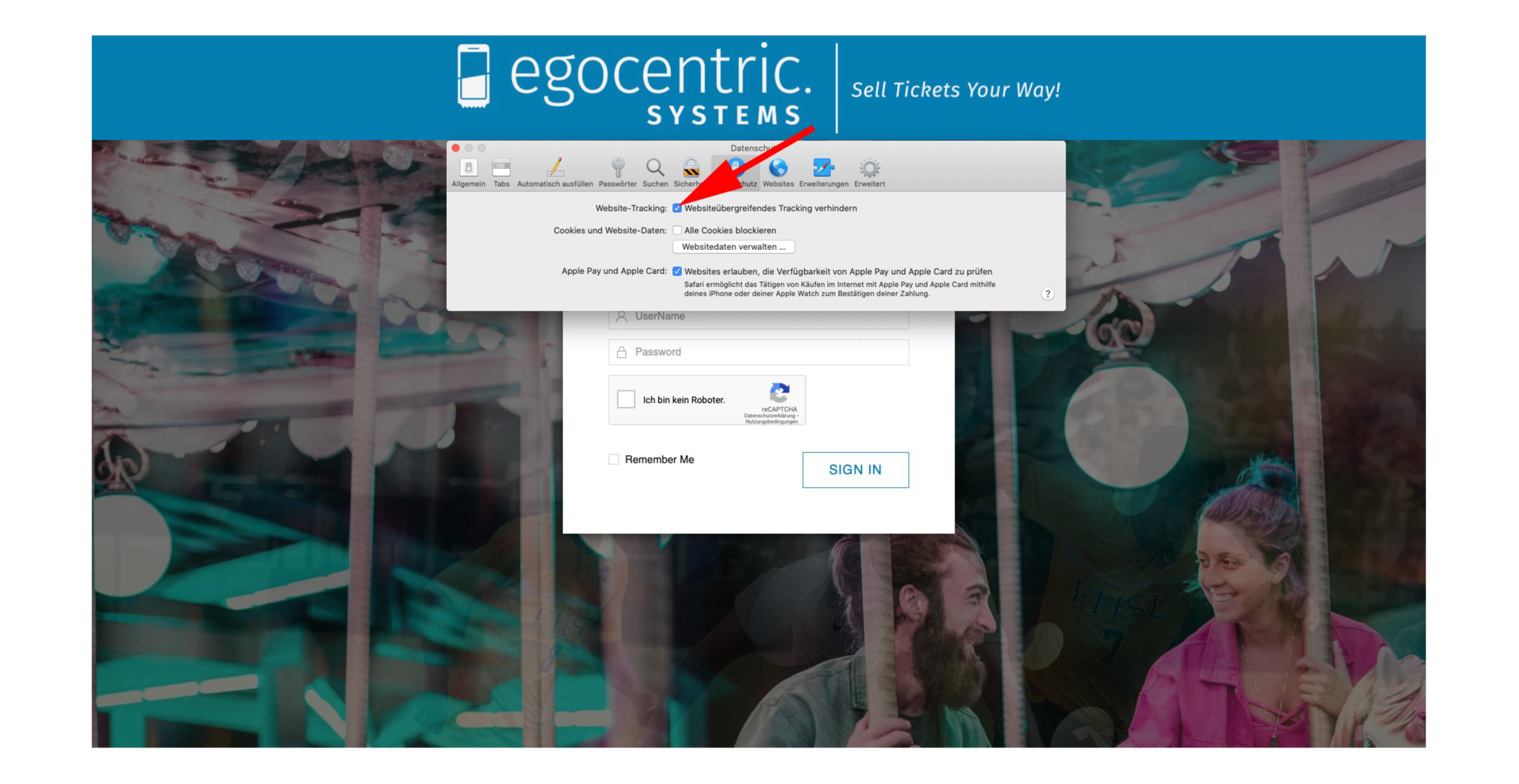 Wenn du dich versuchst über Safari einzuloggen und die Daten vom System nicht angenommen werden. Dann liegt dies nicht daran das Deine Login Daten falsch sind, sondern das Einstellungen in deinem Browser diesen Login blockieren.