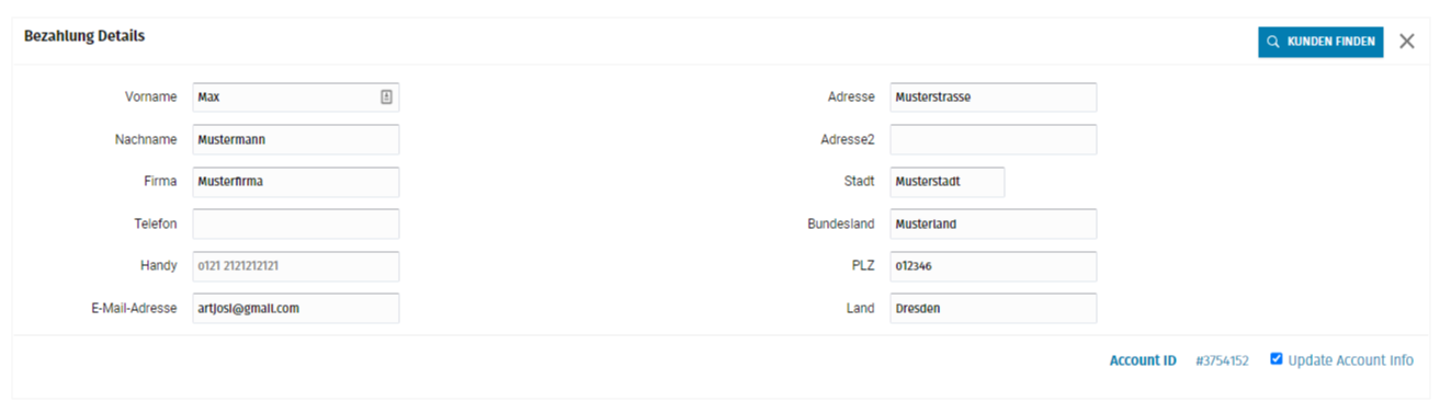 2. Im Warenkorb können nun die Kundendaten hinzugefügt werden. Entweder du verwendest Daten
