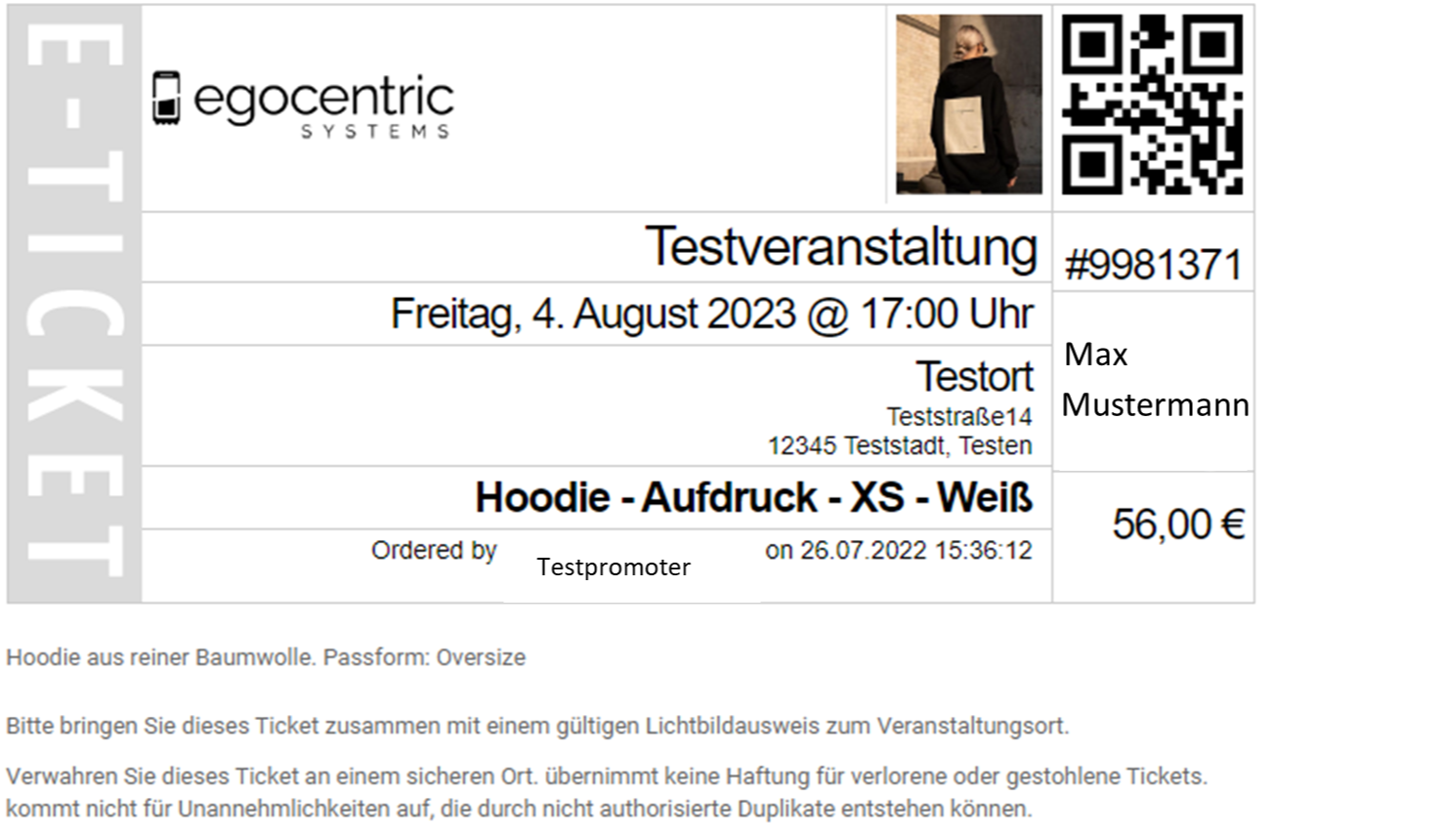 Dein Kunde bekommt dann eine E-Mail mit der Rechnung und den Zahlungsdetails. Wenn du als Versandart E-Mail- Versand ausgewählt hast, dann bekommt er zusätzlich den Voucher zum Einlösen des Merchandising Artikels.