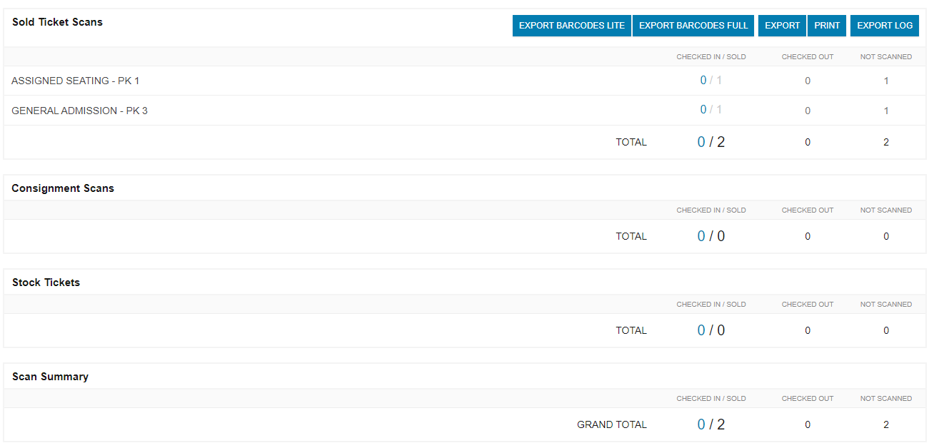 Über den Barcode Scann Report kannst auswerten wie viele deiner verkauften Tickets gescannt worden sind oder wie viele derzeit aus gescannt oder noch gar nicht gescannt worden sind.