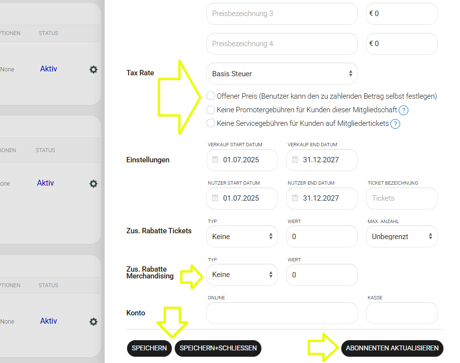 - So aktivieren Sie den abweichenden VVK-Start für Abonnementen oder Mitglieder
