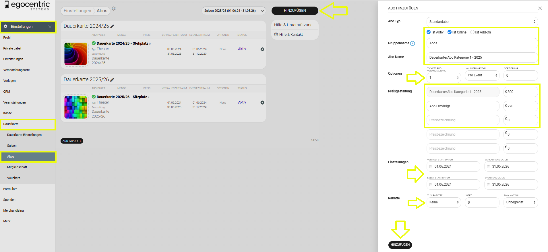 4. Weise das Abo einer zuvor definierten Saison zu.