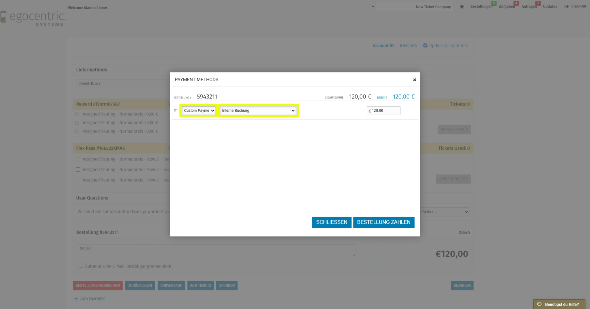 - Benutzerdefinierte Zahlungsarten im Eventmanager einrichten.