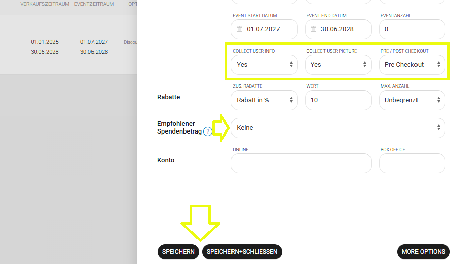 - Definiere Preise, Rabatte und speichere die Einstellungen.