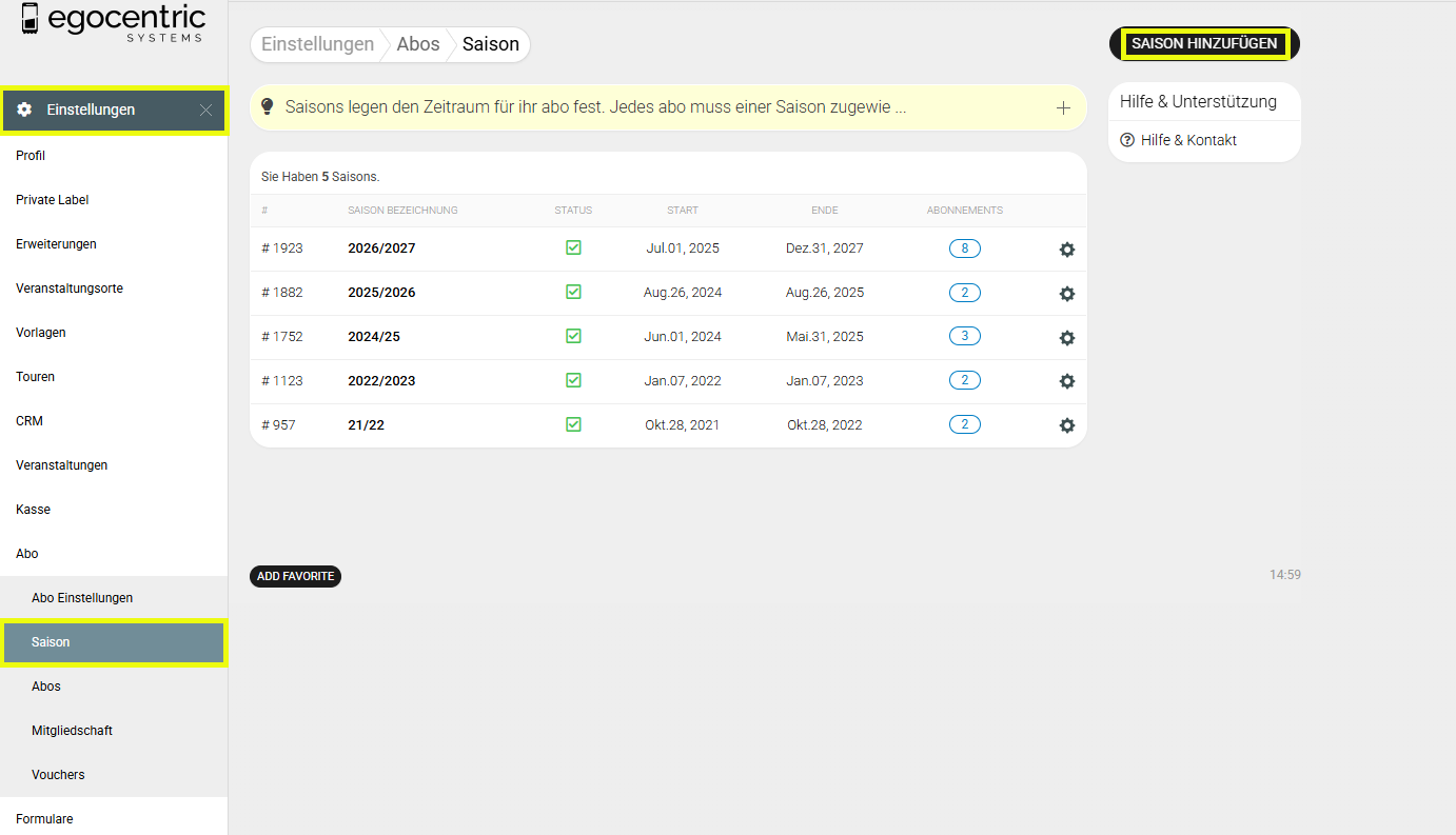 - Saisonübernahme bestehender Abos/Dauerkarten aktivieren