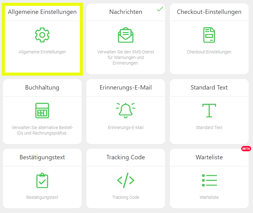 Unter Checkout- Einstellungen: