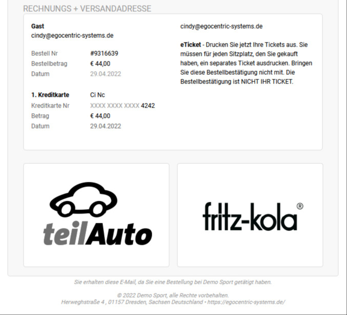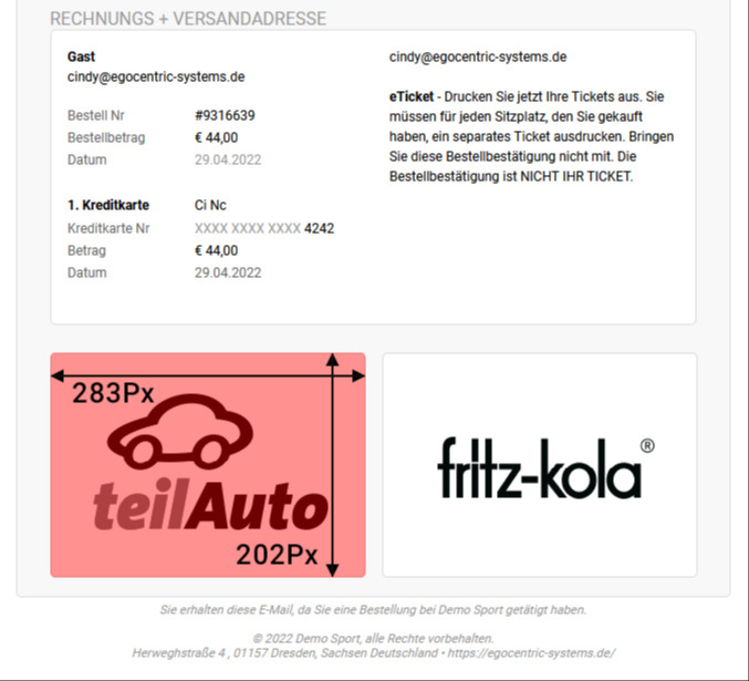 Auf Deiner Bestellbestätigung, welche Du versendest, hast Du die Möglichkeit Sponsorenbilder zu platzieren.
