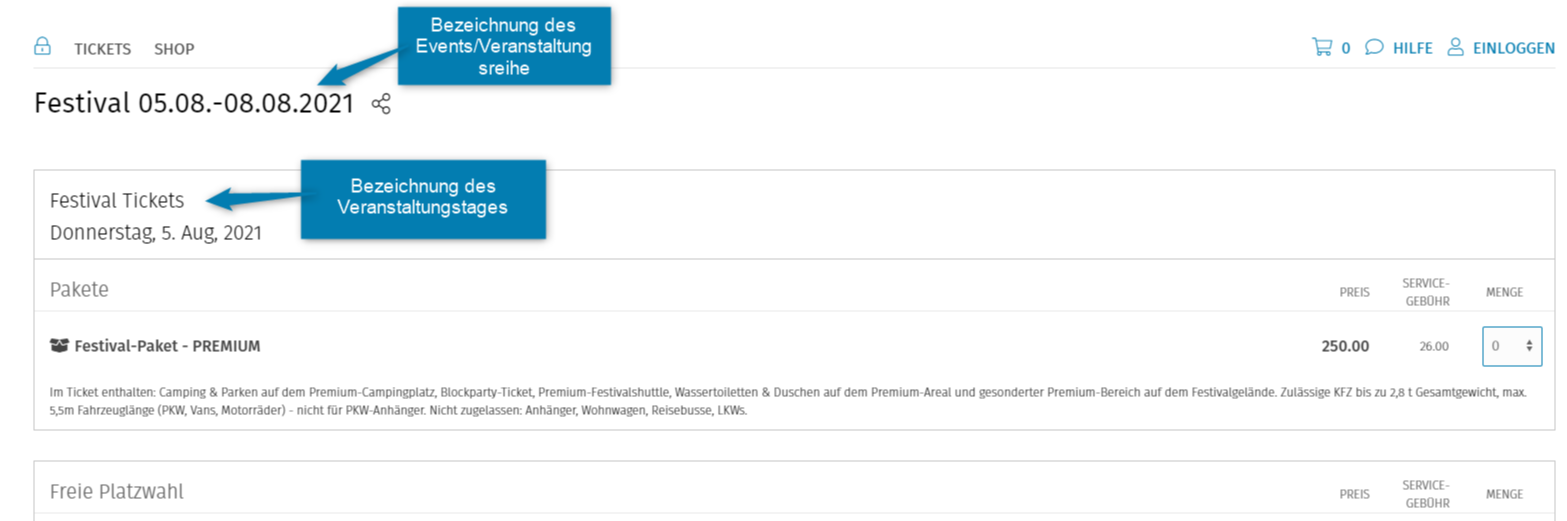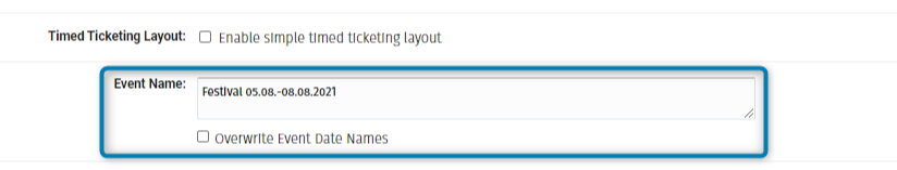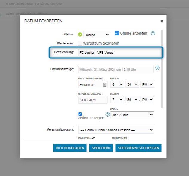 In dem Feld Bezeichnung kannst du nun die Bezeichnung dieses Veranstaltungstages ändern. Bitte beachte auch hier wieder, dass wenn du die Bezeichnung hier änderst du nur die Bezeichnung des einzelnen Tages änderst und du dann im Shop zwei unterschiedliche Bezeichnungen dargestellt bekommst.