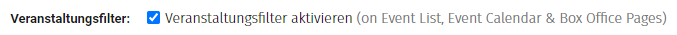 Nachdem nun alle Kategorien und Unterkategorien angelegt und den jeweiligen Veranstaltungen zugeordnet sind, muss nun noch die Anzeige des Filters im Ticketshop aktiviert werden.