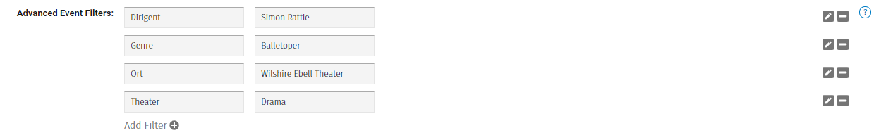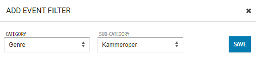 In dem sich geöffneten Fenster kannst du nun die Kategorie des Filters Eintragen. Z. B. Spielstätte, Künstler, Dirigent oder Genre.