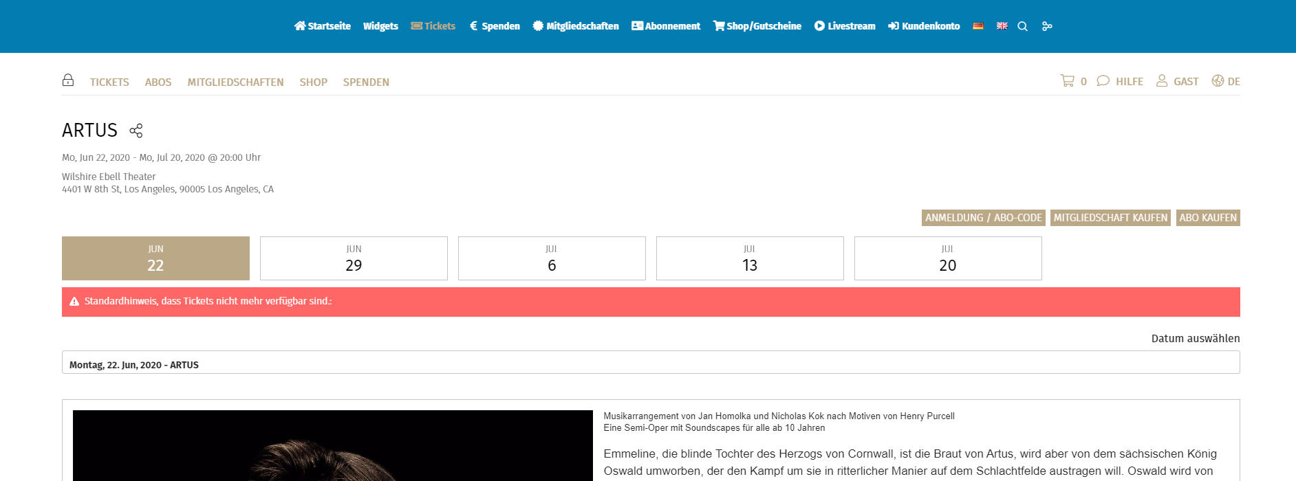 Wir bieten die die Möglichkeit für Veranstaltungen, wo der Verkauf noch nicht begonnen oder bereits geendet hat, einen individuellen Text zu hinterlegen.