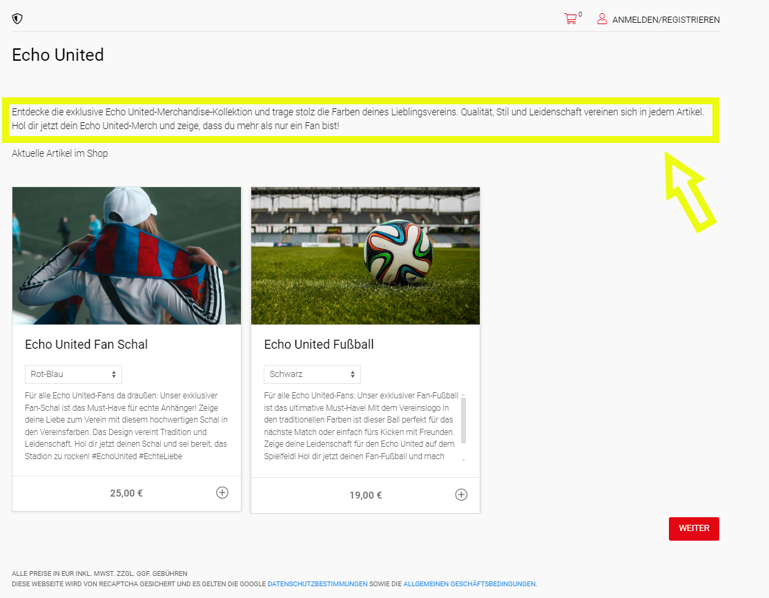 Du kannst diese Beschreibung aber auch für andere Informationen nutzen. Bitte beachte, das du hier nur bis zu 2000 Zeichen eintragen kannst.