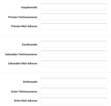 Sollte es weitere Ansprechpartner geben, kannst Du diese ebenfalls hinterlegen. Nutze dazu bitte die Felder Zweit- und Drittkontakt.