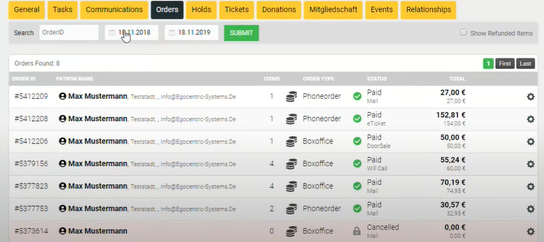 - Überblick über alle Bestellungen