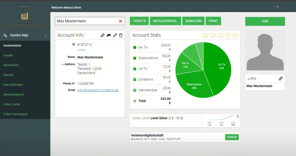 Events & Tickets: Überprüfe, welche Events der Kunde besucht hat und welche Tickets er gebucht hat.