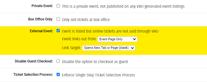 Damit deine Veranstaltung nun nicht auf die Ticketseite führt, sondern in einen anderen Shop oder Webseite, musst du die Veranstaltung als Externe Veranstaltung markieren.