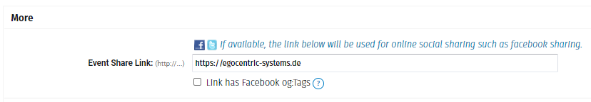 Die URL zu dem externen Shop oder der externen Webseite kannst du in dem Bereich More in dem Feld Event Share Link hinterlegen.
