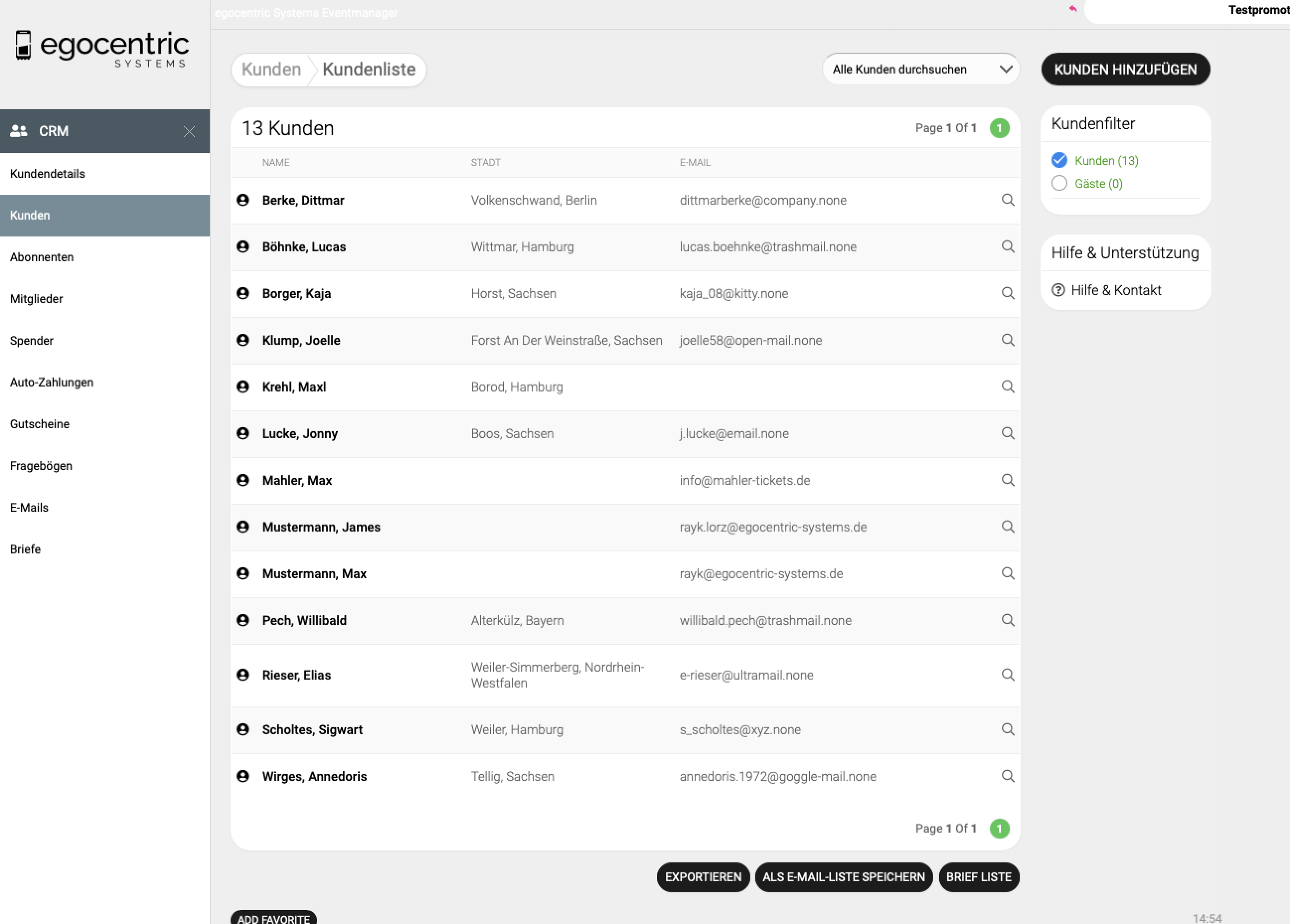 Die importierten Kundendaten kannst Du nun über die Kundensuche aufrufen, bearbeiten oder für E-Mail-Listen verwenden.