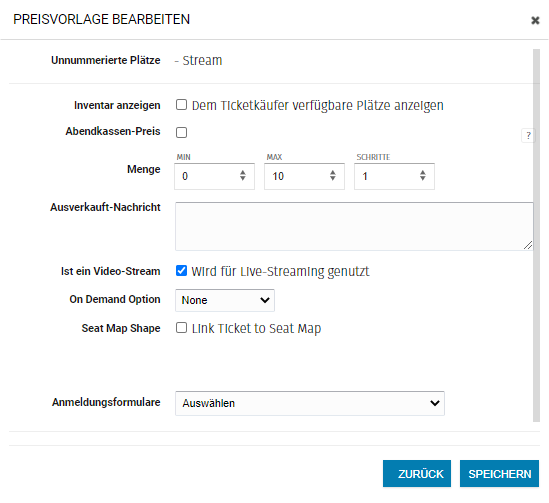 Damit auf Deinen Tickets die URL zum Stream (Plugin) angezeigt wird, musst Du unter