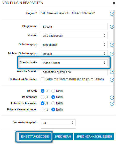 Nachdem Du Deine Veranstaltung angelegt hast, benötigst Du eine Streaming ID oder den Einbettungscode, welchen Du in der Veranstaltung hinterlegst.