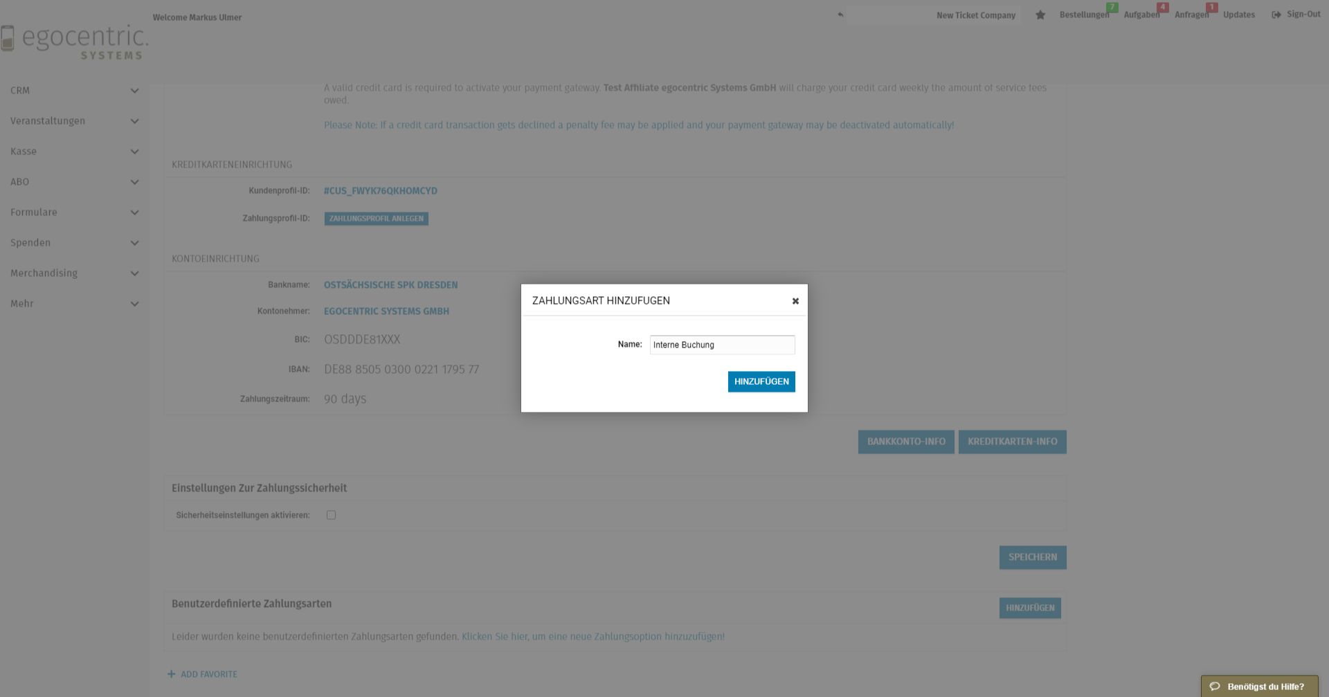 Zu den bereits vordefinierten Zahlarten in Verbindung mit Paymentgateways oder bestimmten Prozessen, kannst du auch eigene Zahlarten hinzufügen.