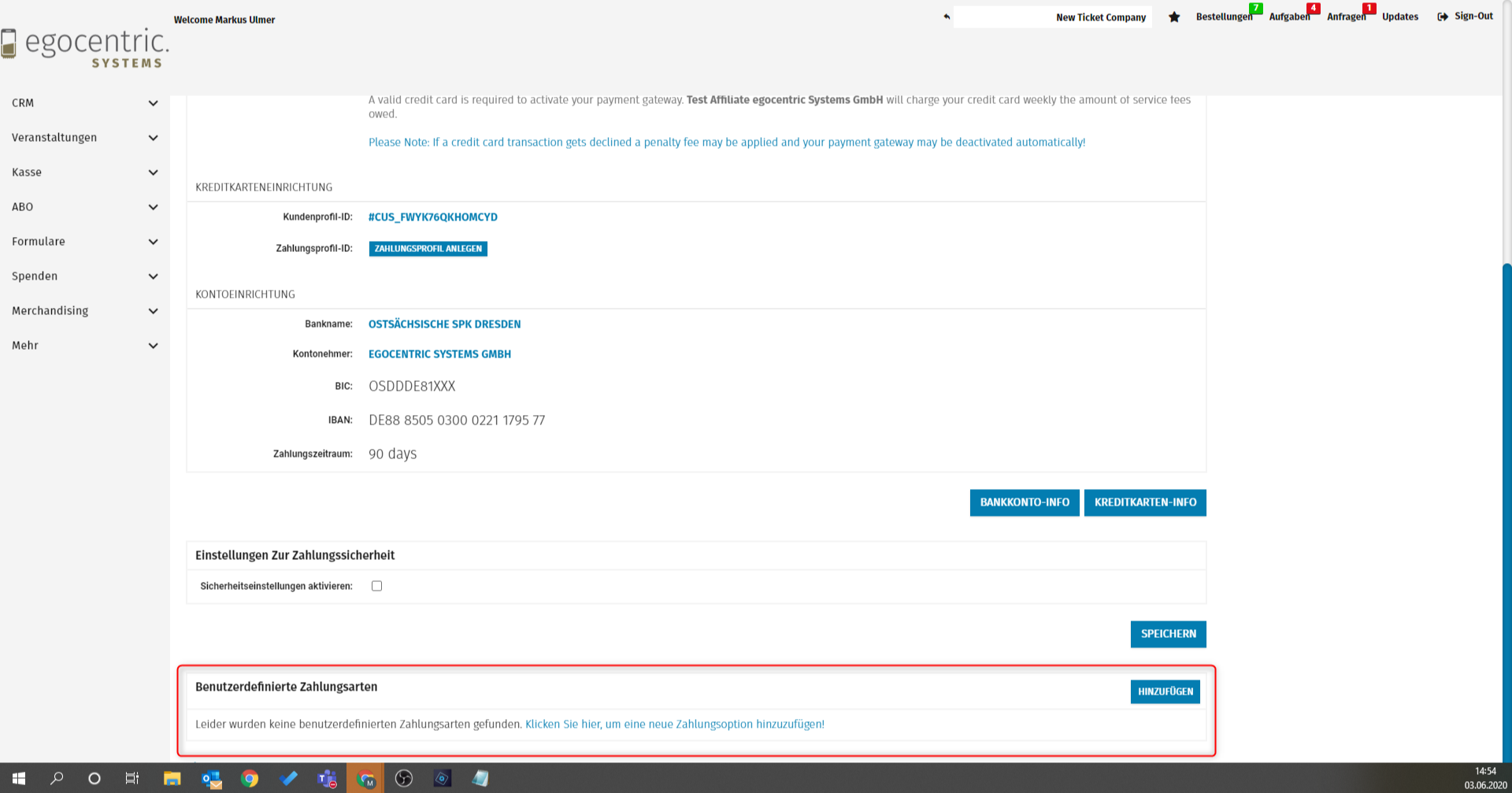 Dieses kannst du unter Einstellungen > Profil > Zahlungseinstellungen konfigurieren. Hier findest du den Bereich Benutzerdefinierte Zahlungsarten über hinzufügen kannst du hier weitere Zahlungsarten hinzufügen.