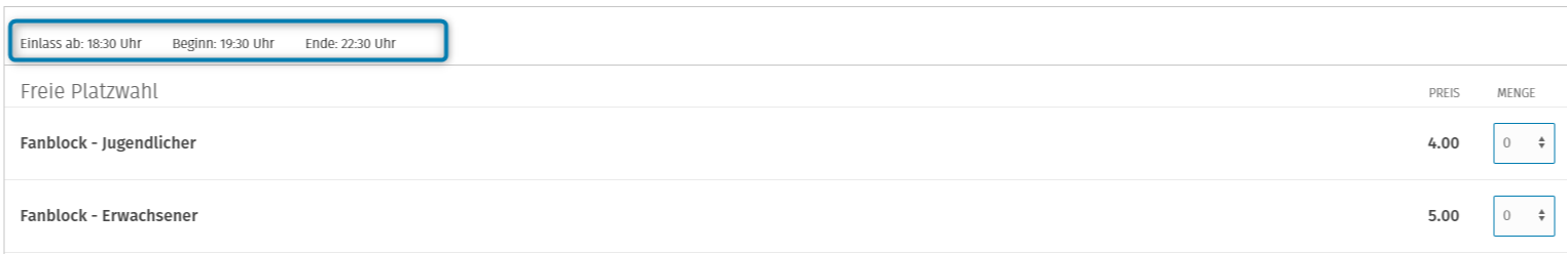 Diese drei Zeiten werden im Ticketshop oberhalb der Ticketauswahl angezeigt.