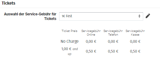 Neben der Gebühr, welche auf jedes Ticket berechnet wird, bieten wir dir auch noch die Möglichkeit eine Bearbeitungsgebühr einzurichten. Diese Gebühr wird einmalig pro Warenkorb berechnet.
