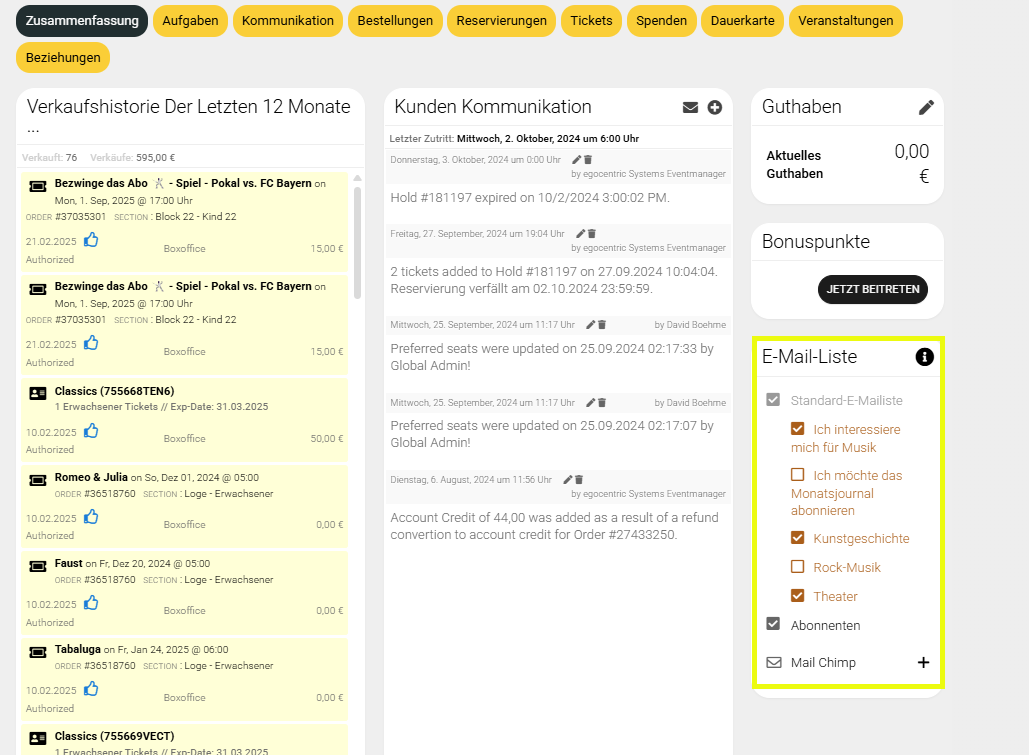 Im Kundenprofil (CRM)