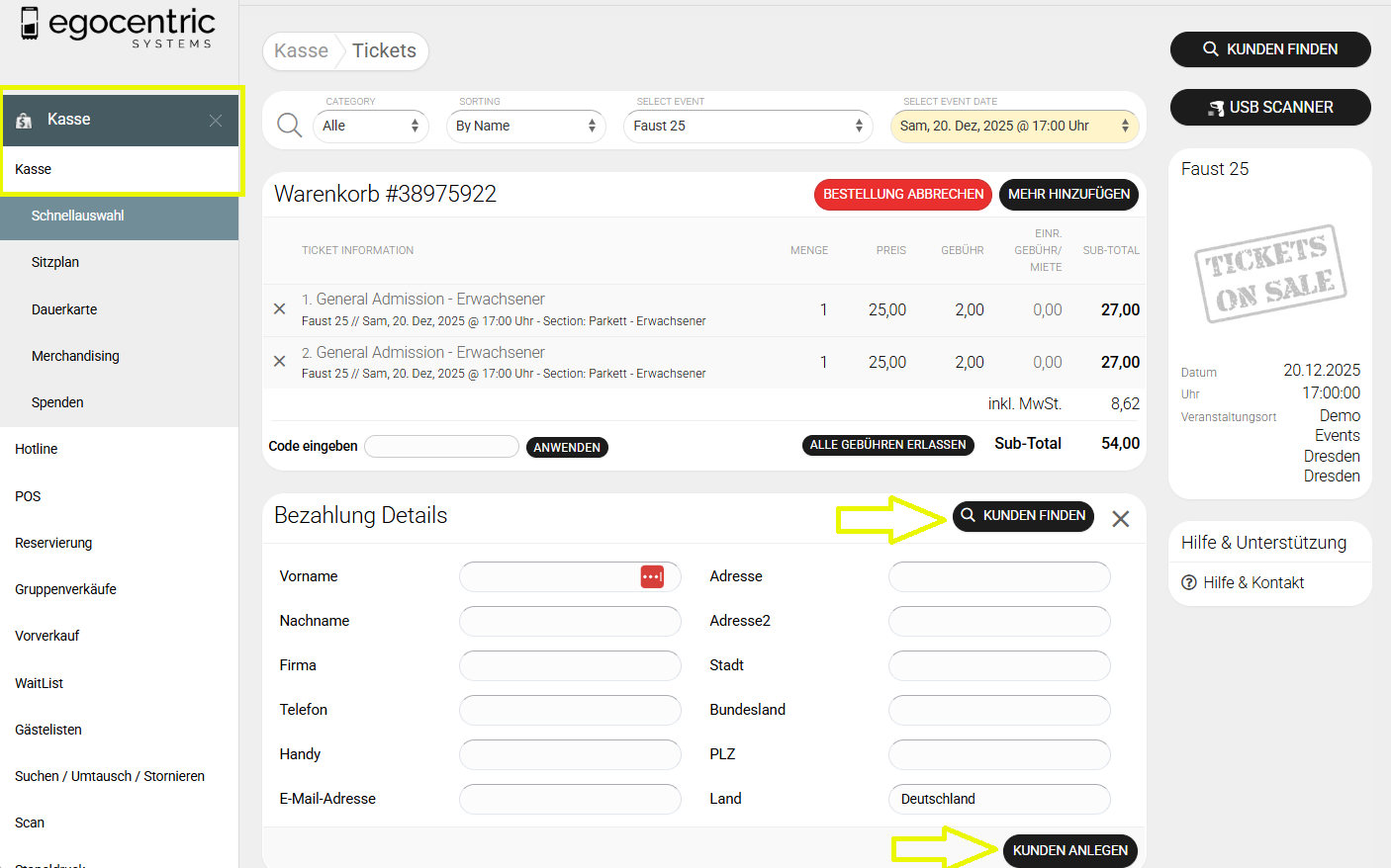 Bei Kassenverkauf