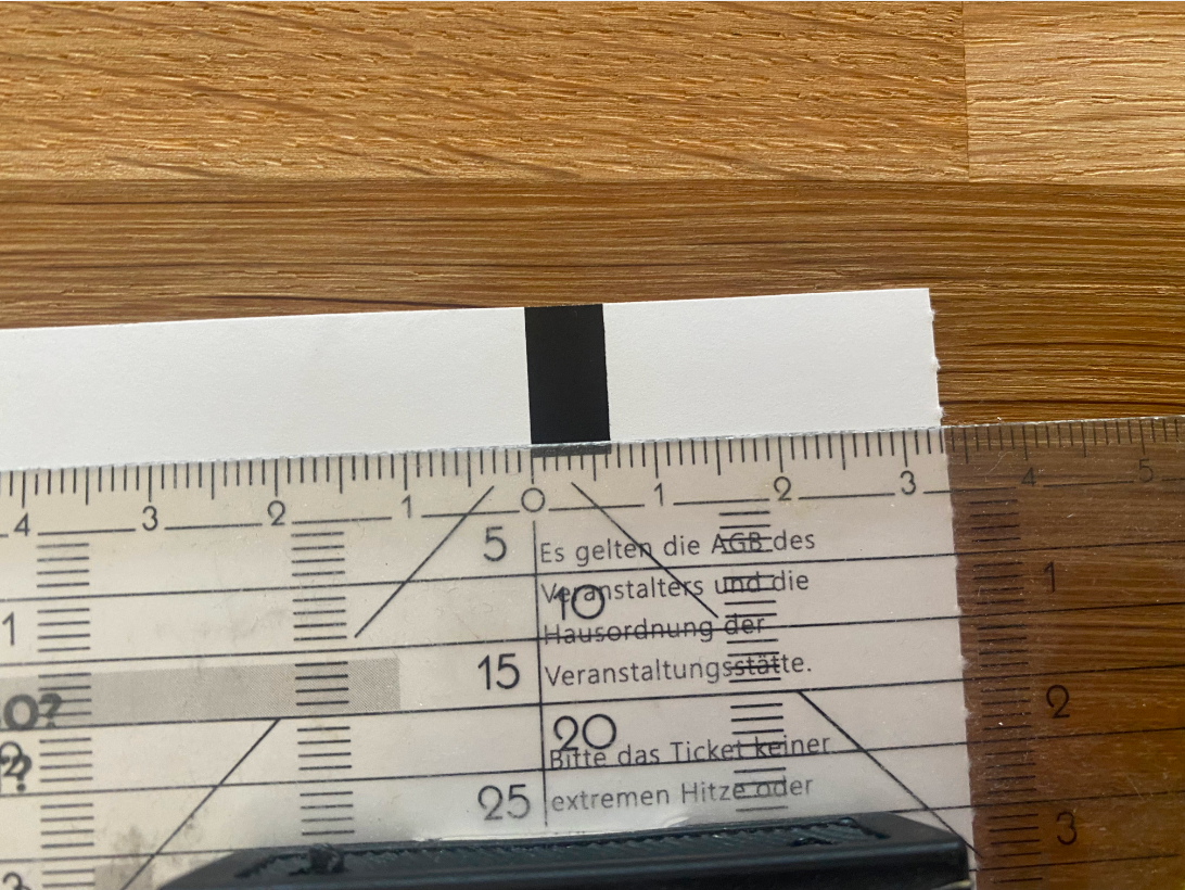 Messe nun die Schwarzmarke aus. Messe dazu von der kurzen Seite bis zum Ende der Schwarzmarke.