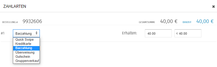 5. Um die Zahlungsarten auswählen zu können klickst du auf BEZAHLEN. Es öffnet sich ein Pop-Up Fenster.