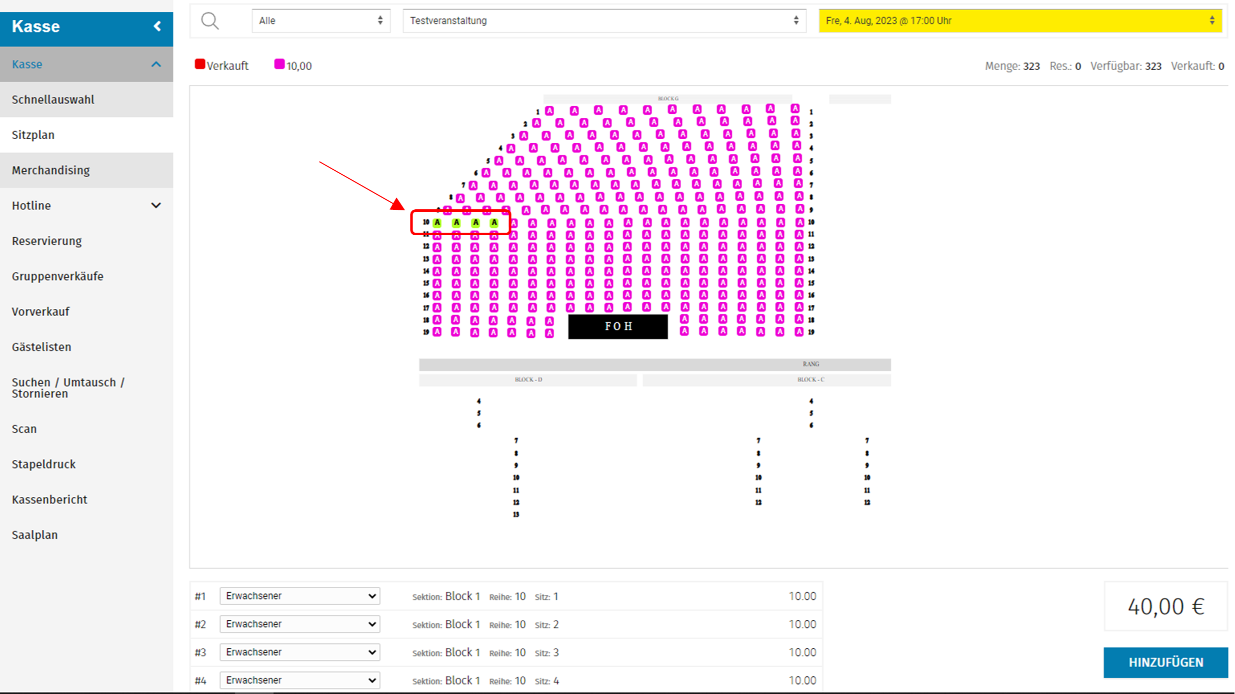 1. Du gehst zu Kasse > Sitzplan > Veranstaltung wählen