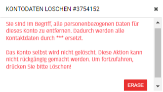 - Im System können Kundendaten anonymisiert werden, jedoch können keine gesamten Konten gelöscht werden.