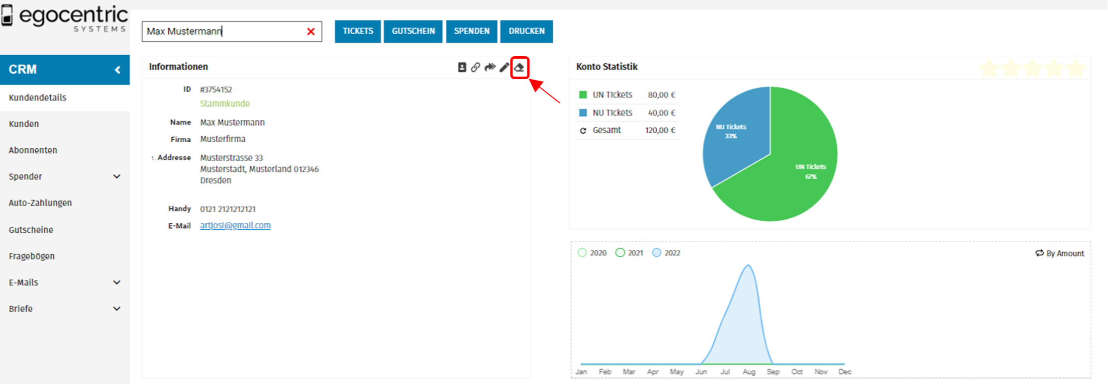 4. Wenn du jetzt im oberen rechten Bereich auf den Radiergummi klickst, kannst du die Daten des Kunden löschen.
