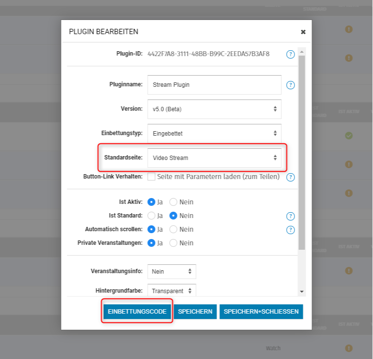 Einrichtung des Plugin für den Livestream