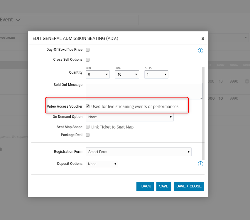 Wenn Du in der Konfiguration des Preises bist, kannst Du unter "More Options" zu den weiteren Konfigurationsmöglichkeiten umschalten. Dort findest Du den Punkt "Video Access Voucher". Wenn Du diesen aktivierst, wird der Zugangscode generiert und auf dem Ticket mit ausgegeben.