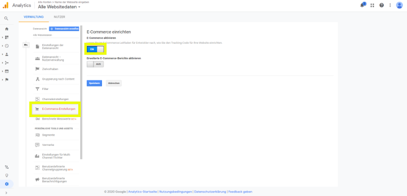 Schritt 6: Aktivieren des E-Commerce-Tracking (empfohlen)