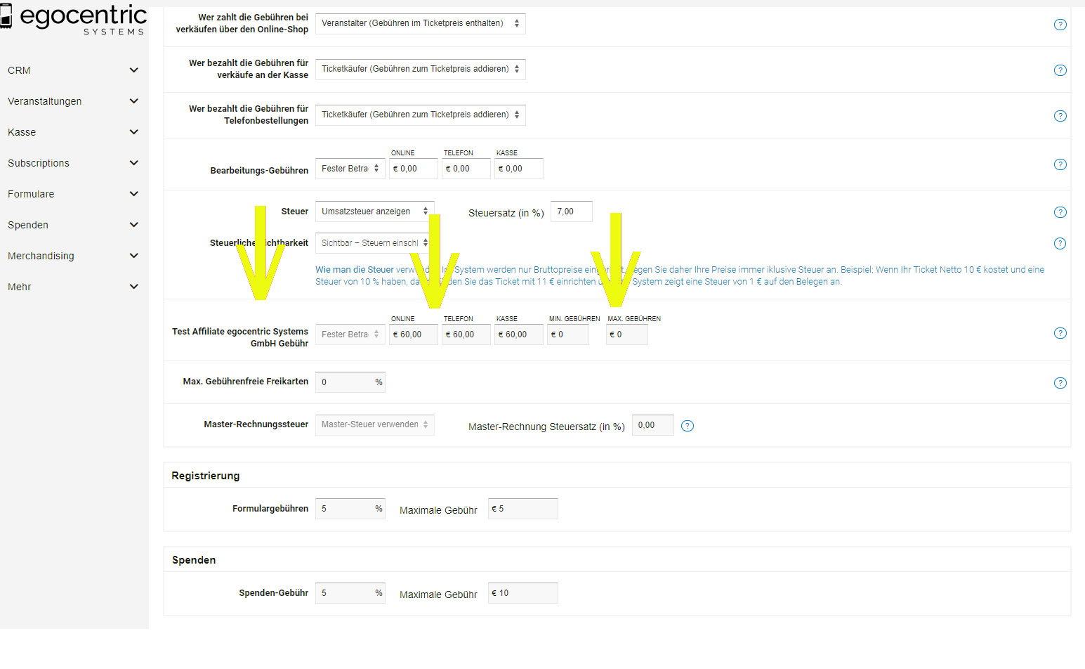 Um die Gebühren einzusehen, gehe zu Einstellungen >> Profil >> Gebühren. Hier findest Du die hinterlegten Gebühren, die auch im Vertrag aufgeführt sind.