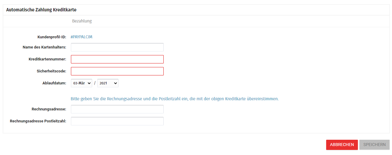 Hinterlege Deine Kreditkarte unter Einstellungen >> Profil >> Zahlungseinstellungen. Klicke auf Zahlungsprofil anlegen oder Kreditkarten-Info, um die Daten zu hinterlegen oder zu ändern.