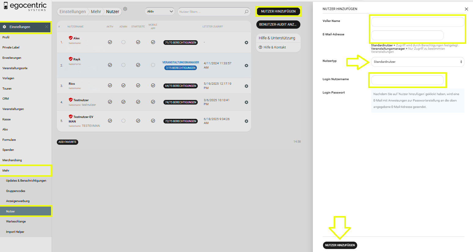 7. Klicke auf "Nutzer hinzufügen". Dein Mitarbeiter erhält nun eine Mail an die hinterlegte Adresse, über die er ein Passwort vergeben kann.