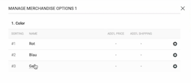 Optionen festlegen: Um Variationen wie Farben und Größen anzulegen, gehe in das Menü für Optionen. Lege beispielsweise die Farben Rot, Blau und Gelb als erste Variation fest.