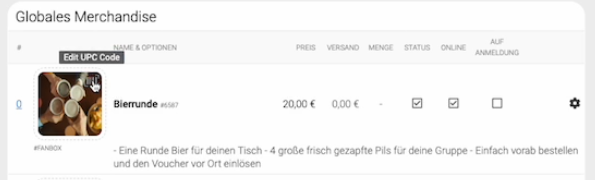 Code hinzufügen: Du kannst jedem Artikel einen UPC- Code zuweisen. Scanne den Code mit einem Barcode-Scanner ein oder füge ihn manuell hinzu.