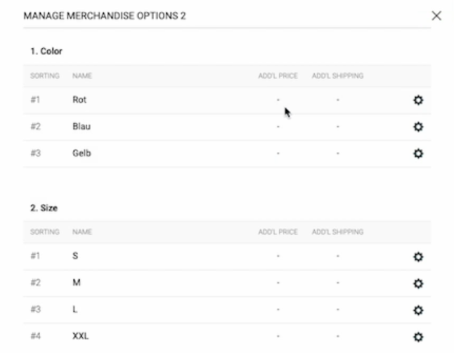- Effiziente Verwaltung: Lege Merchandise-Artikel mit unterschiedlichen Variationen wie Farben und Größen an und verwalte sie individuell.