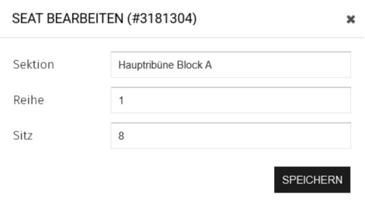 5. Im aktualisierten Fenster kannst Du in den Zeilen Sektion, Reihe und Sitz neue Werte vergeben. Beende mit "Speichern".