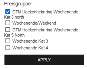 5. Wähle im Sitzplan den jeweiligen Block aus. Es öffnet sich im rechten Teil des Fensters der Bereich "Preisgruppe" mit Checkboxen.