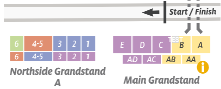 - Individuelle Labels für Sitzblöcke oder -ränge