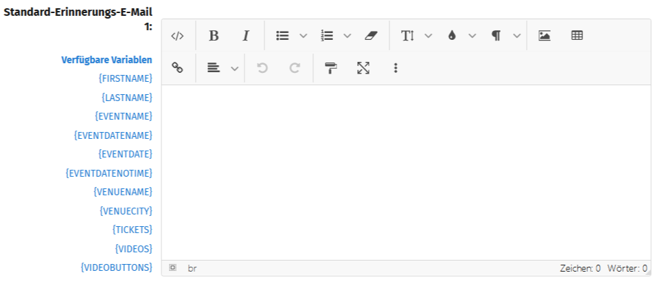 TIPP: Nutze die verfügbaren Variablen, um Platzhalter wie z.B. den Namen des Empfängers, Veranstaltungsort oder Veranstaltungsdatum automatisch auzufüllen. Eine Übersicht der Platzhalter findest Du HIER >>